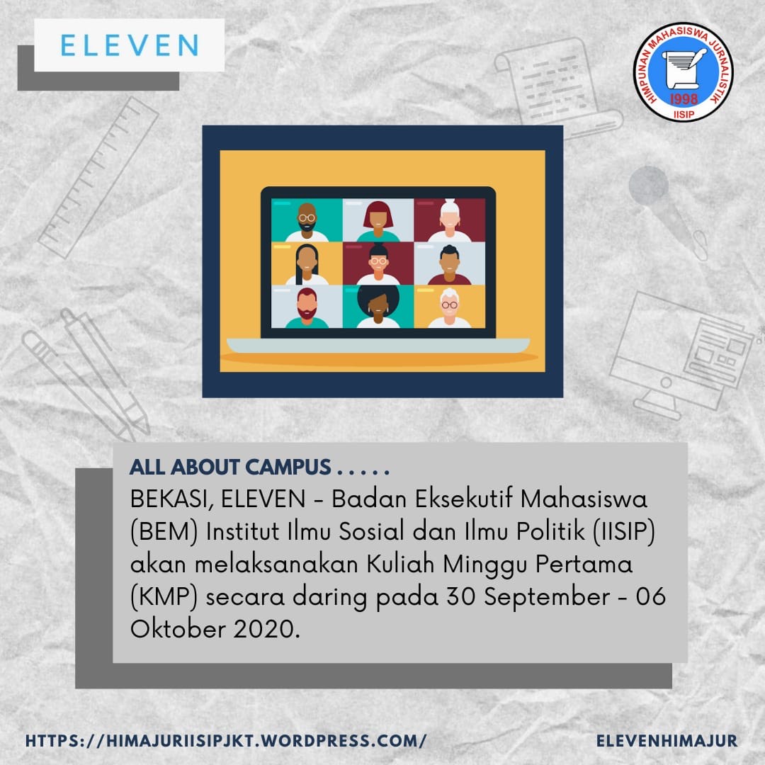 BEKASI, ELEVEN – Badan Eksekutif Mahasiswa (BEM) Institut Ilmu Sosial dan Ilmu Politik (IISIP) akan melaksanakan Kuliah Minggu Pertama (KMP) secara daring. Hal itu diputuskan untuk menyesuaikan situasi di masa pandemi.