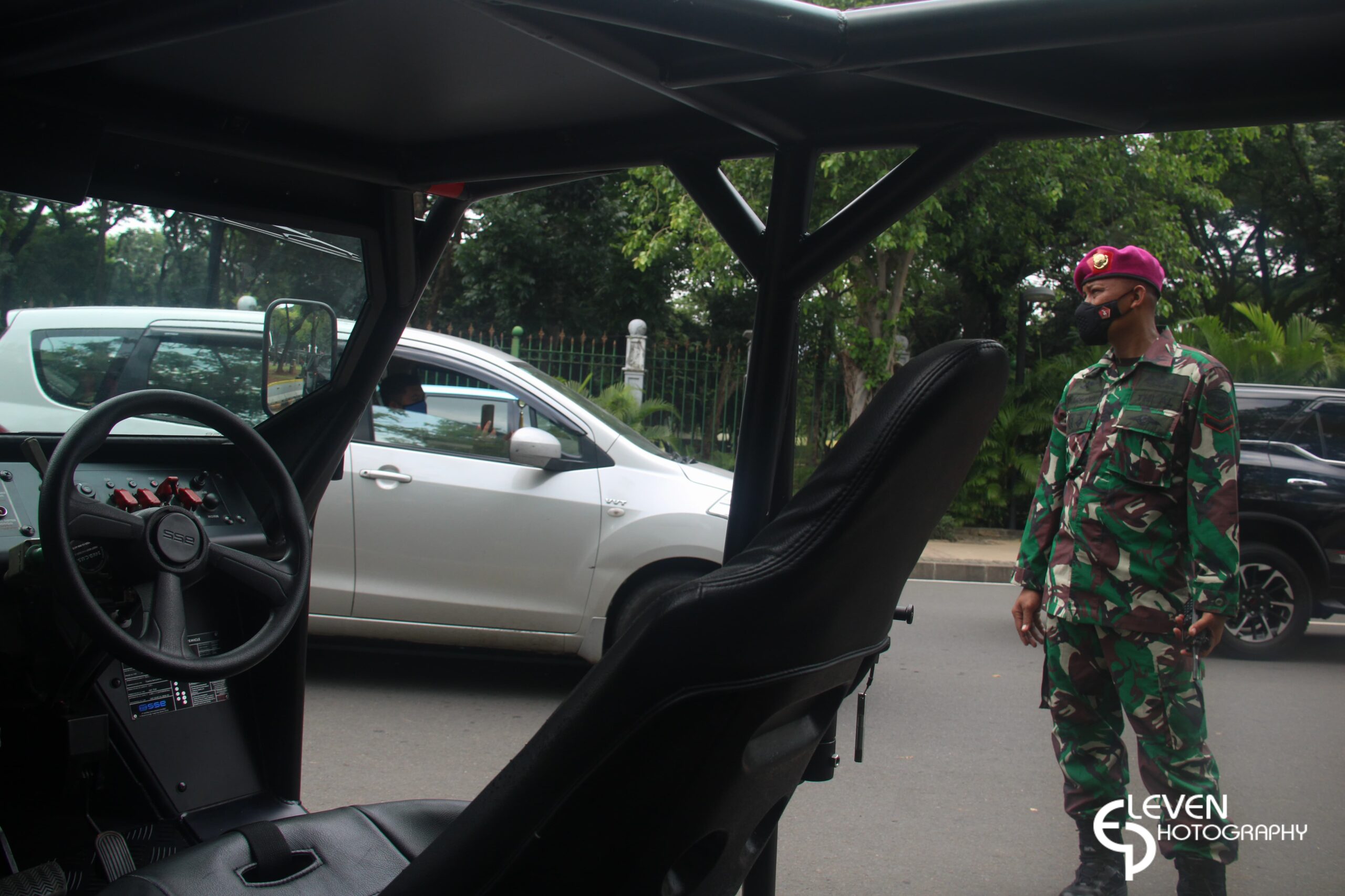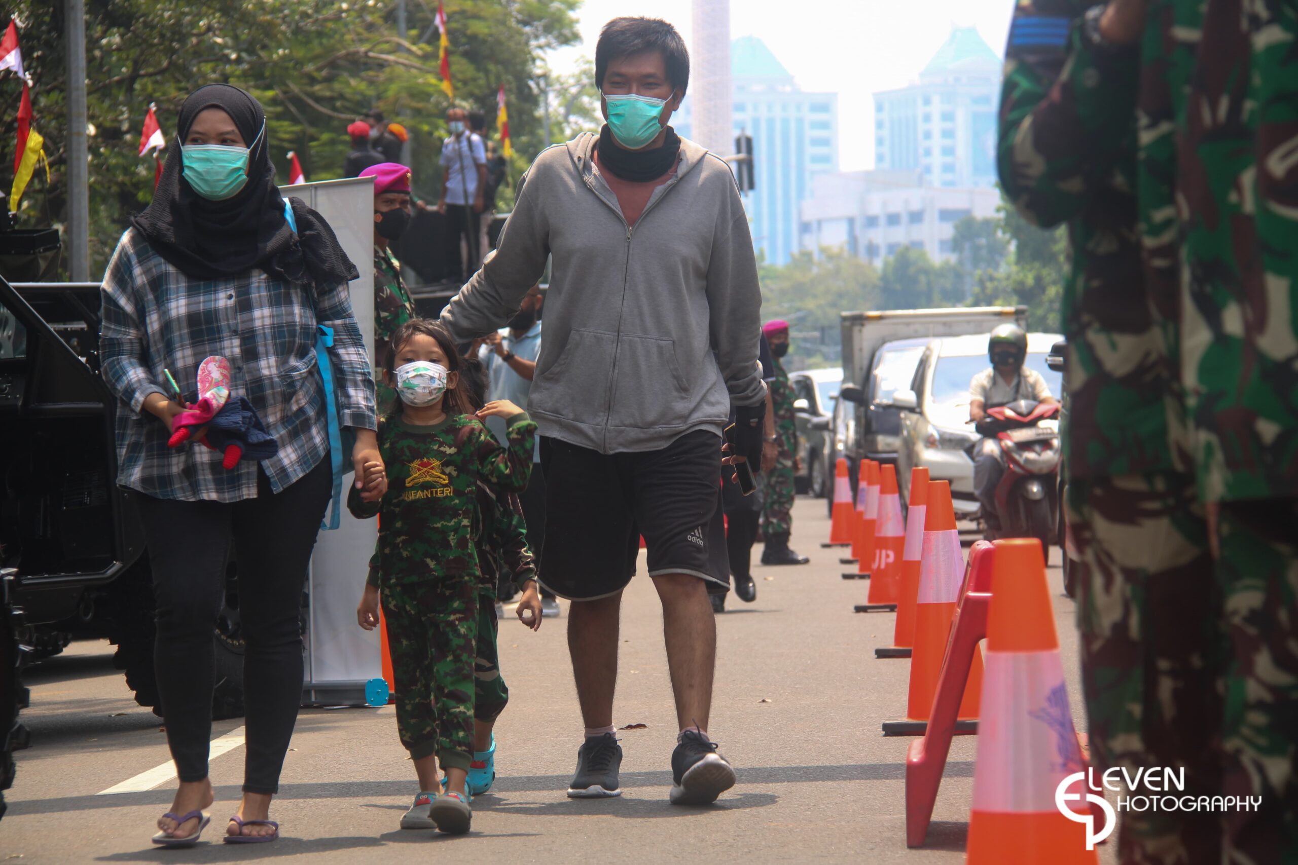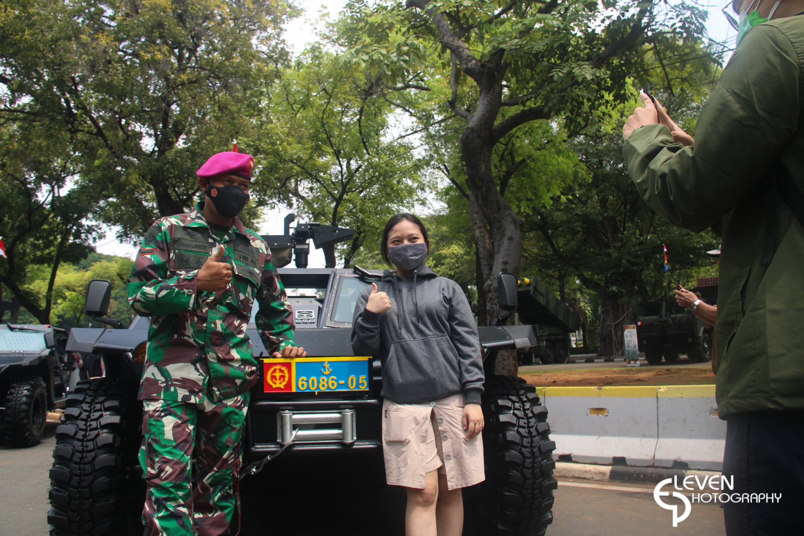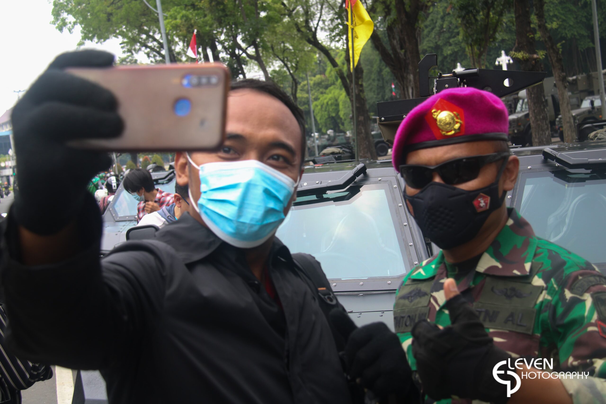 JAKARTA, ELEVEN – Sejumlah warga berswafoto di hari terakhir Pameran Alat Utama Sistem Persenjataan (Alutsista), Rabu (06/10/2021). Pameran yang berlangsung sejak hari Minggu (03/10/2021) tersebut menampilkan sebanyak 112 kendaraan perang.