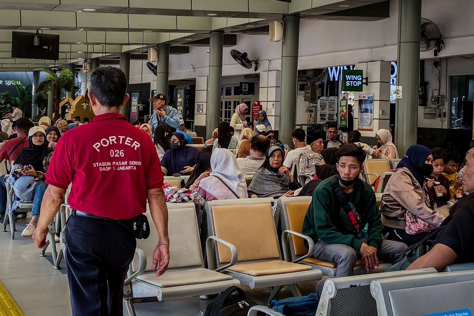 Sementara itu, dalam kondisi stasiun pasar Senen yang padat, namun keadaan tetap aman dan kondusif. Terlihat banyak petugas stasiun yang ikut mengamankan dan menjaga kenyamanan penumpang di area stasiun.