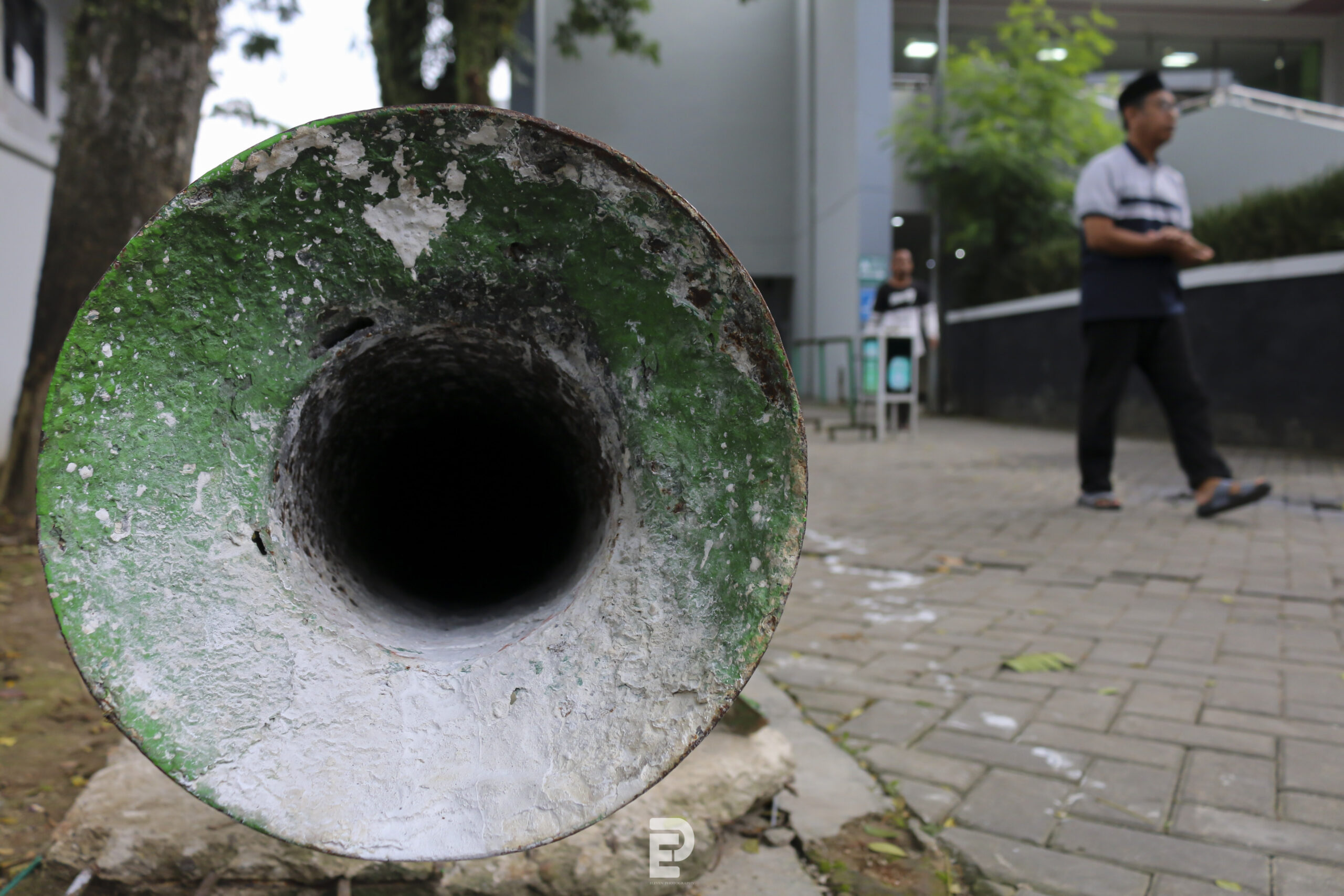 Foto 1: Potret bentuk meriam Jaguar yang kerap kali digunakan untuk penanda waktu berbuka dan imsak di Masjid Agung Al-Araf selama Ramadhan, Kamis (28/03/2024).