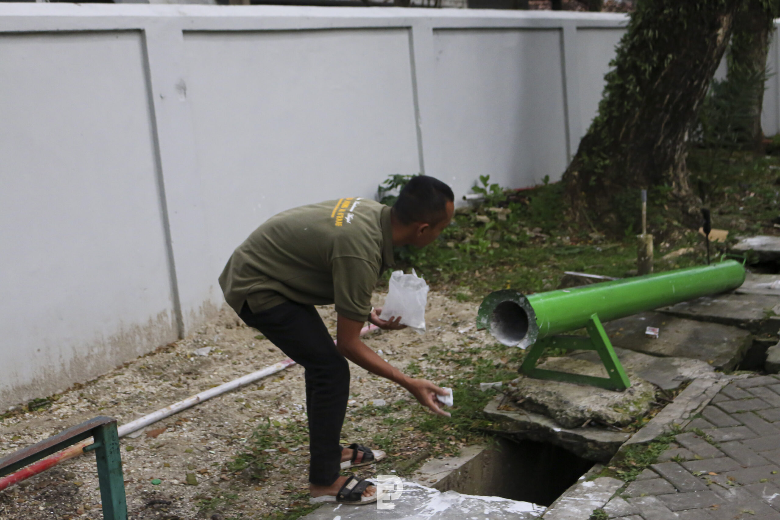 Foto 3: Pengurus Masjid Agung Al-Araf sedang mempersiapkan karbid sebagai bahan dasar peledak meriam, Kamis (28/03/2024).