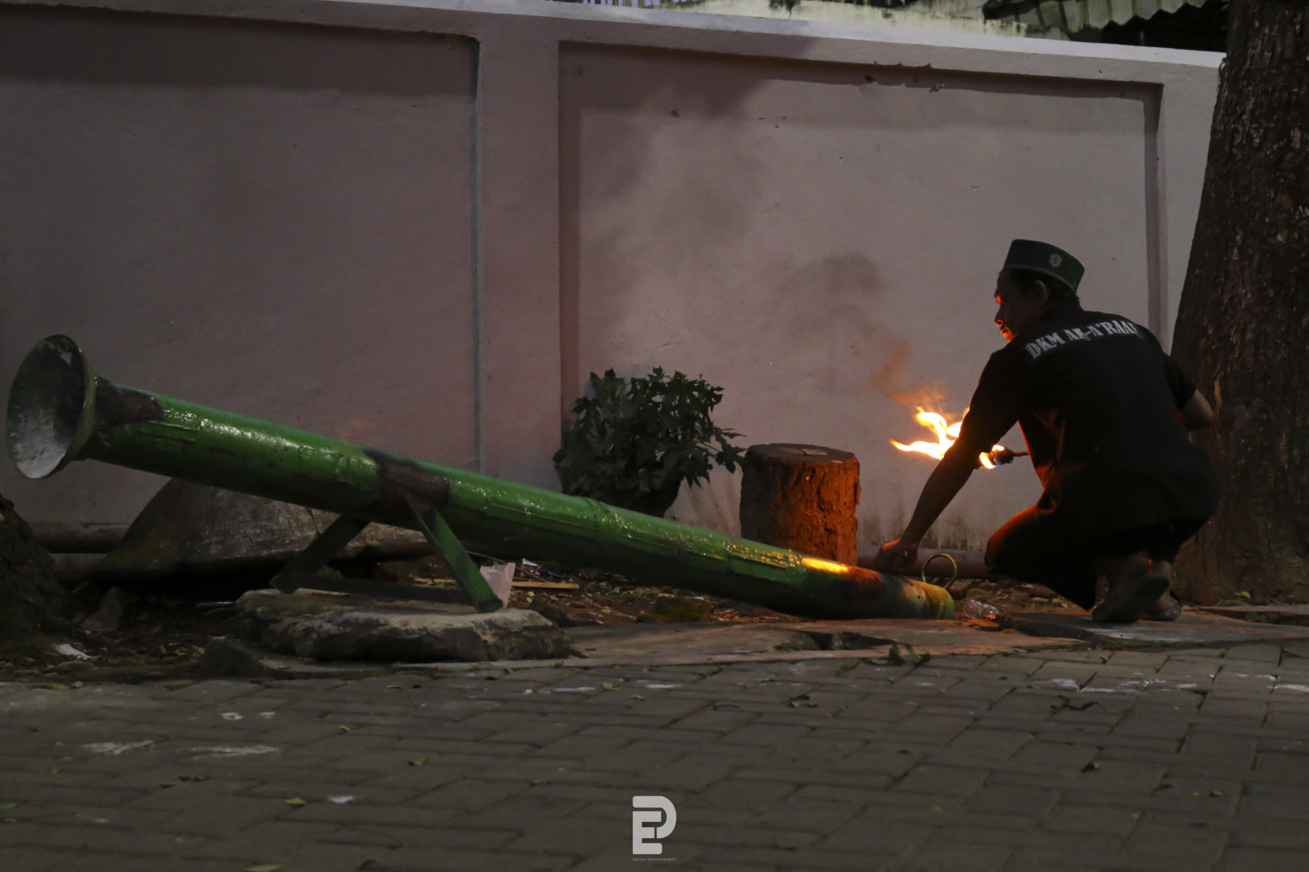 Foto 5: Suasana menjelang meriam jaguar akan di ledakan oleh pengurus Masjid Agung Al-Araf, Kamis (28/03/2024).