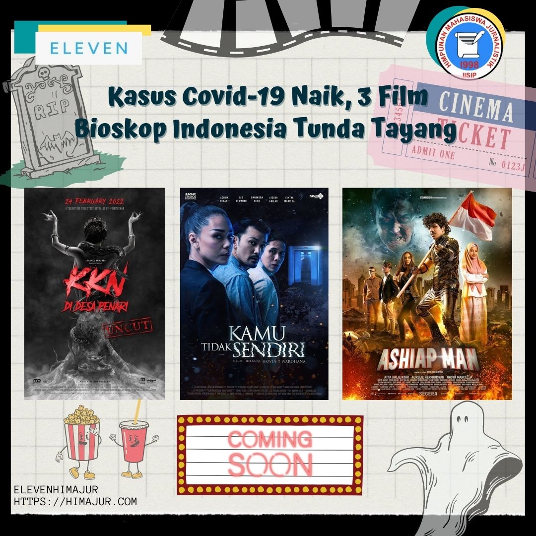 BOGOR, ELEVEN – Seharusnya tayang di bioskop pada Febuari 2022, tiga film Indonesia terpaksa menunda penayangannya akibat jumlah kasus Covid-19 meningkat. Tim produksi mempertimbangkan hal ini demi kepentingan kesehatan penonton, Selasa (15/02/2022).