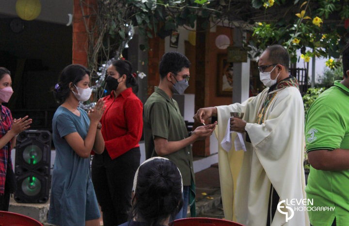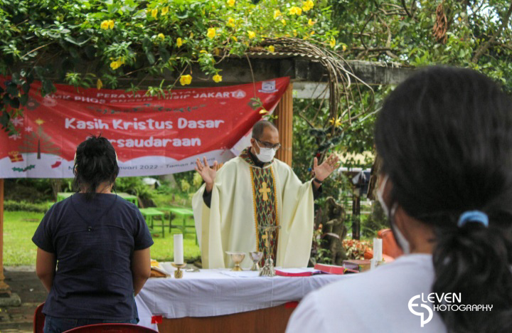 JAKARTA, ELEVEN – Kegiatan perayaan Natal Keluarga Mahasiswa Katolik (KMK) Phos Gnosis IISIP Jakarta di Taman Kaldera, Depok, Jawa Barat, Minggu (09/01/2022).