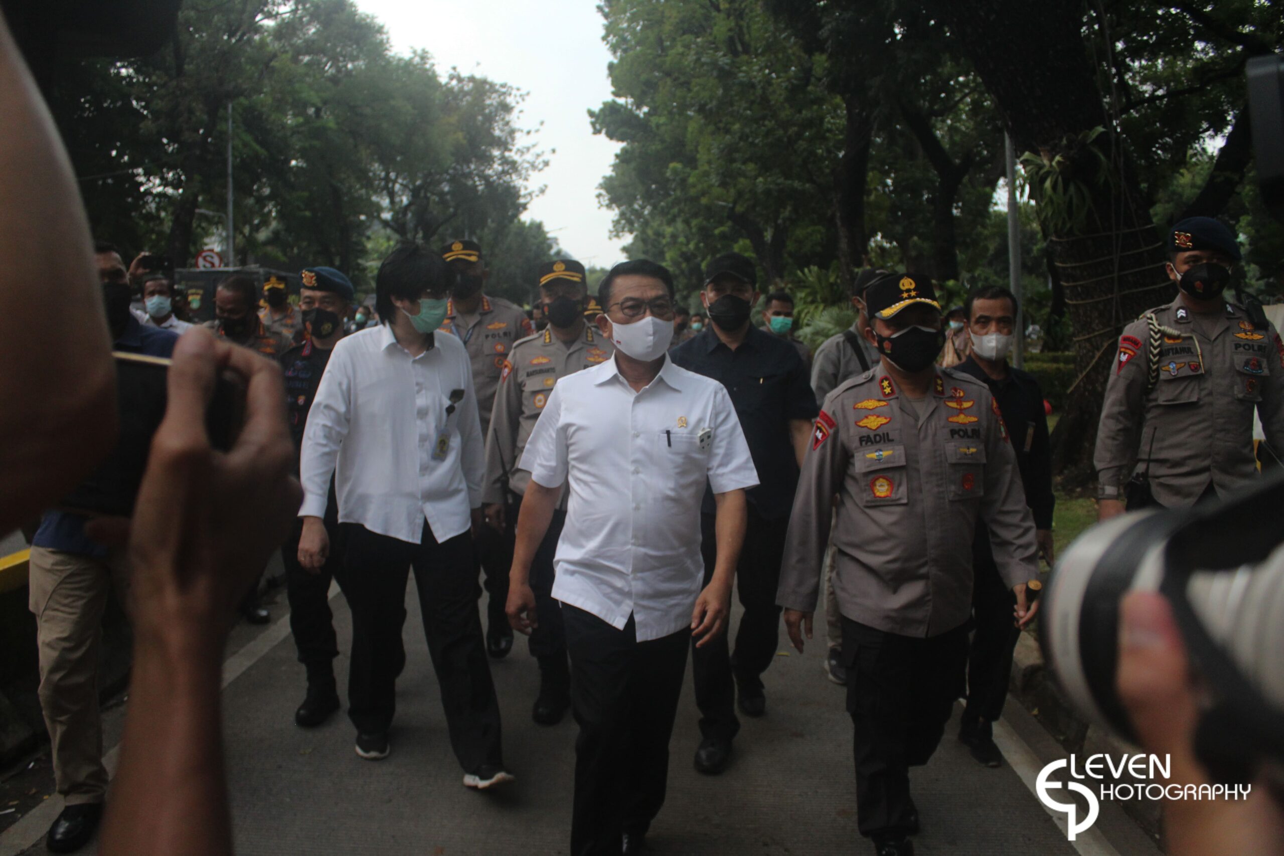 JAKARTA, ELEVEN – Kepala Staff Presiden Moeldoko menemui massa aksi BEM SI di sekitaran patung kuda, Jakarta Pusat, Kamis (21/10/2021). Dalam audiensi itu, perwakilan dari BEM SI memberikan draft kajian evaluasi 2 tahun pemerintahan jokowi-maruf.
