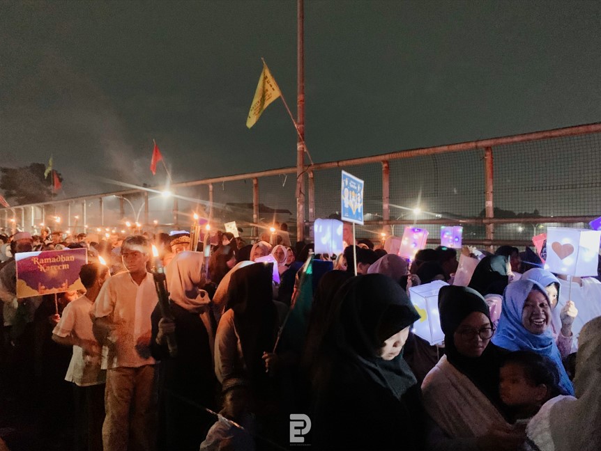 JAKARTA, ELEVEN – Suasana pawai obor di jalan andara ujung, kelurahan pangkalan Jati Baru kec. Cinere, Sabtu (09/03/2024). Para warga antusias menyambut bulan suci Ramadhan 1445 H dengan memeriahkan kegiatan pawai obor.